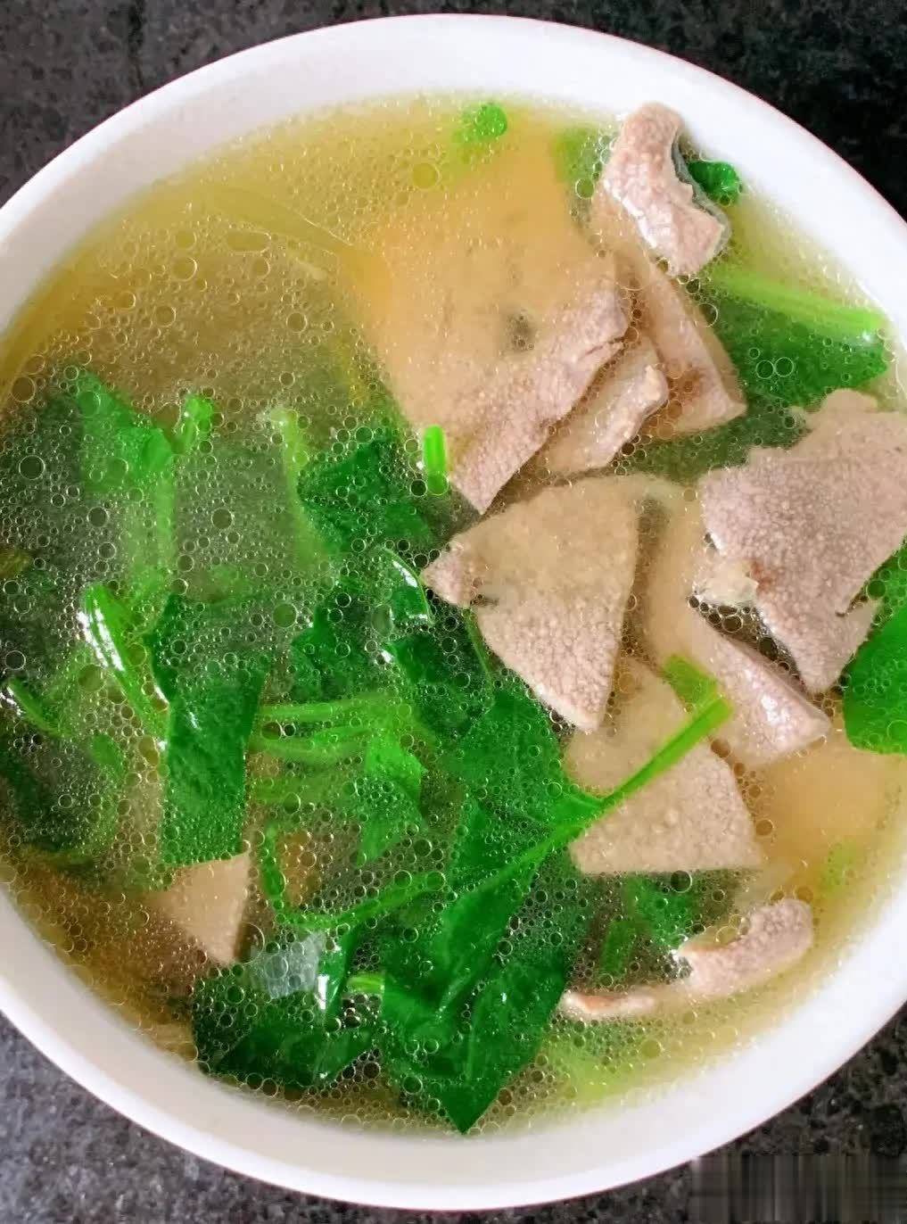 整个过程也就几分钟,猪肝嫩得像豆腐,菠菜清爽,汤水清澈鲜美。每周喝上一两次,感觉浑身都暖洋洋的,特别舒服!