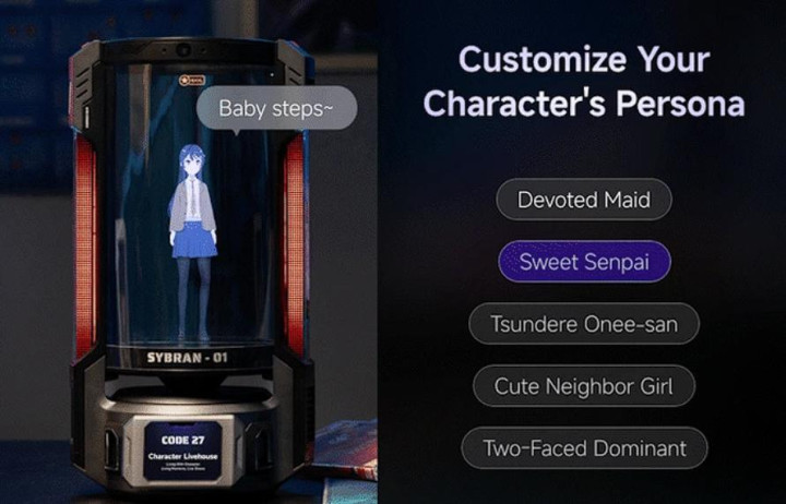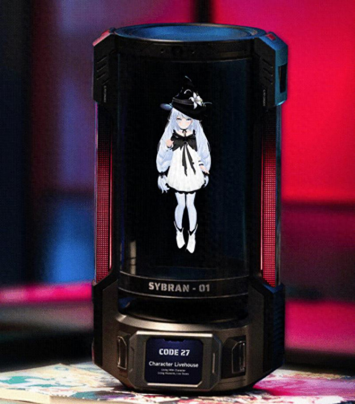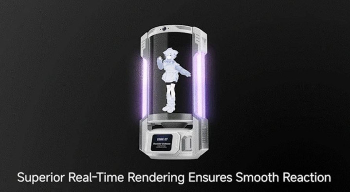 CODE27 AI伴侣采用接近圆柱体的造型,配备全息显示屏,具有蓝牙音频播放功能。