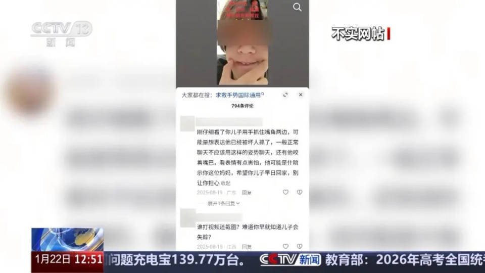 叶某斌、欧阳某某失联后,网络上出现了各类谣言。其中一个是,叶某斌跟母亲视频的时候发了一个酒窝,然后说是暗示母亲“救我”。
