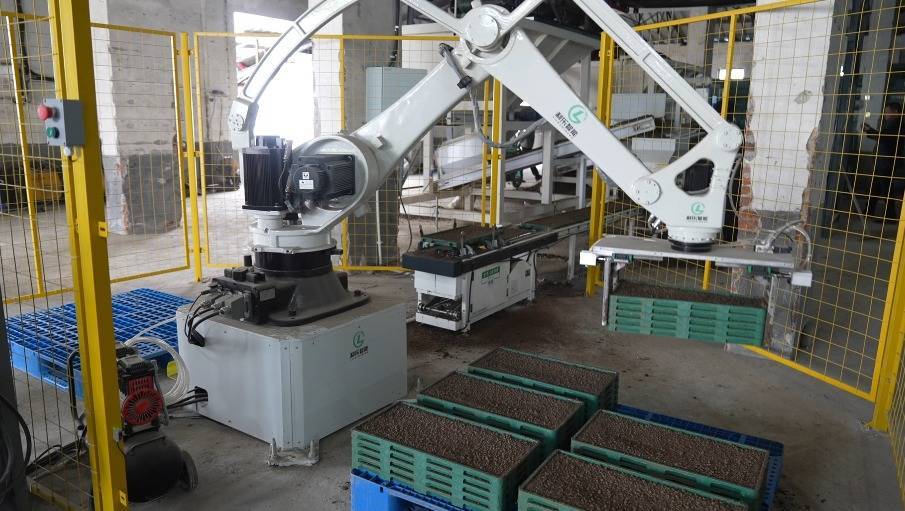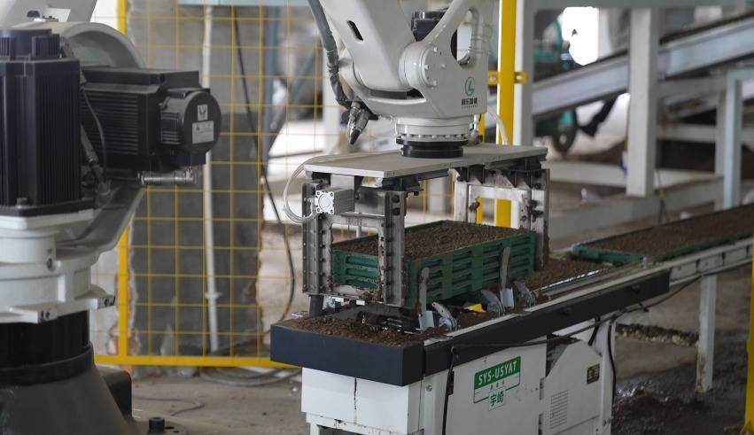 “整条生产线增加机器人作业后,只需两名工人值守,生产效率提升6倍以上。”该公司负责人曾小雨介绍,要实现目前每小时2200盘的规模化育秧效率,过去需要16名工人同步高强度流水作业,如今人力大幅缩减,作业标准更加统一。